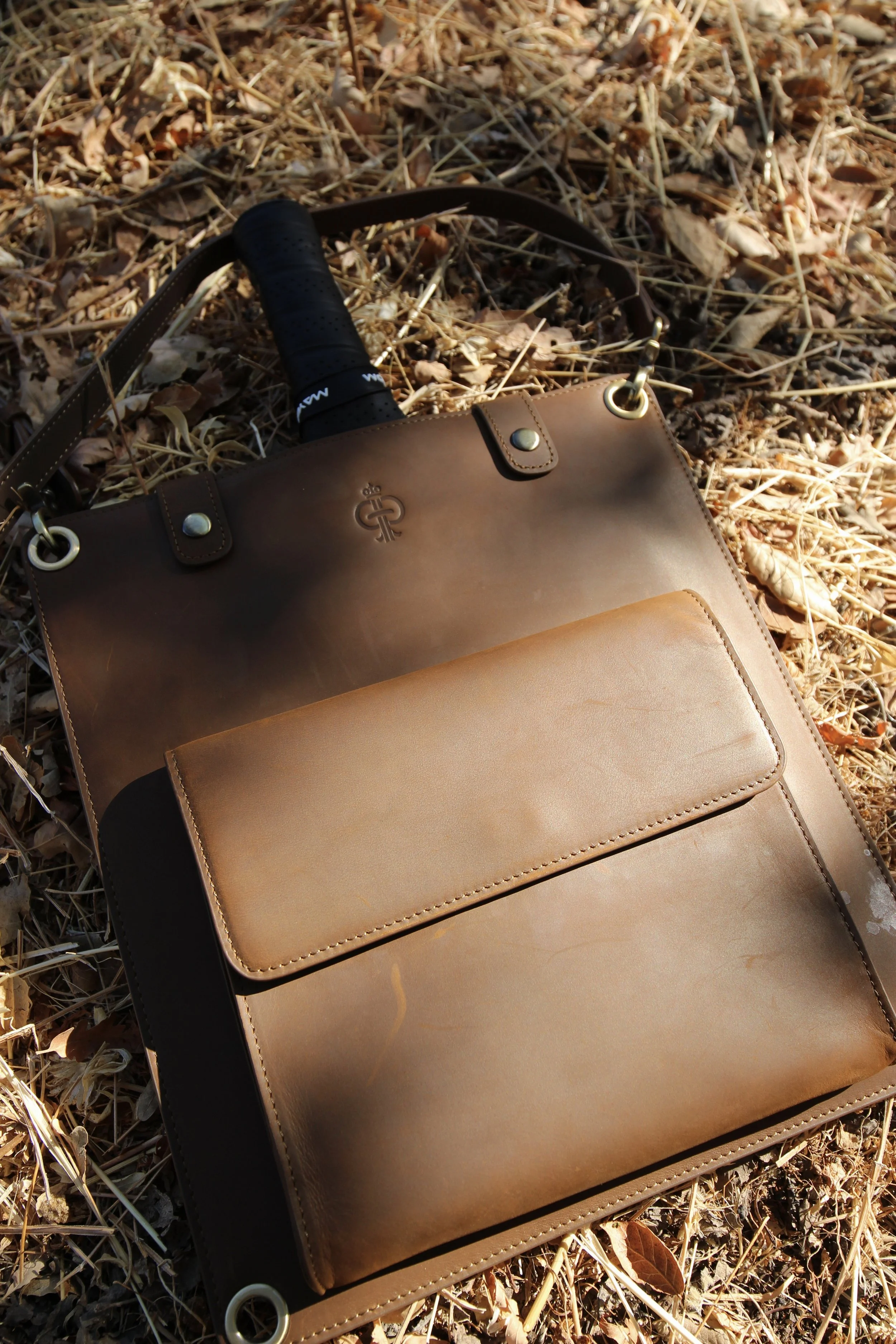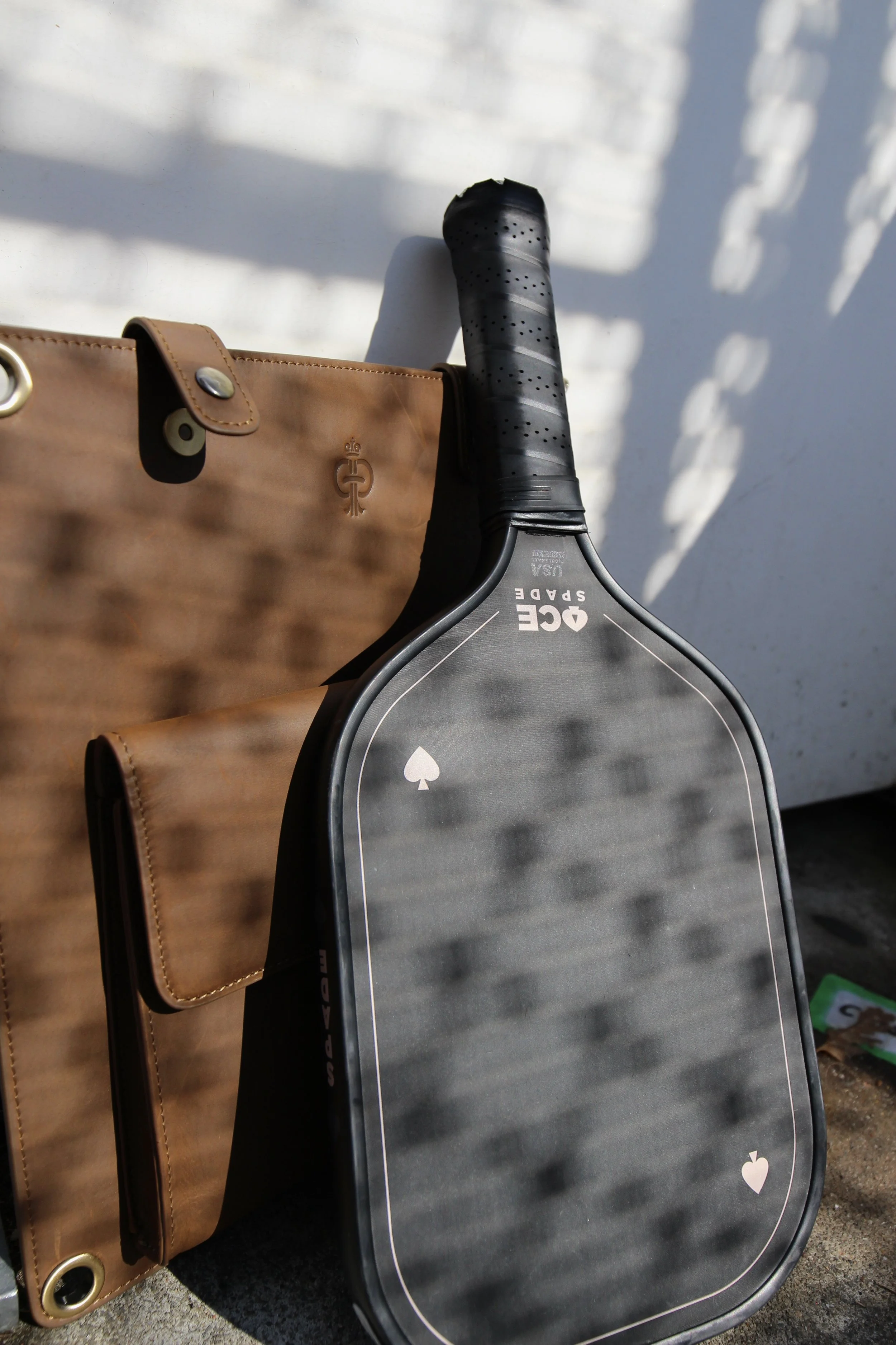 Paddle Prestige's signature series pickleball paddle cover made from cowhide leather.